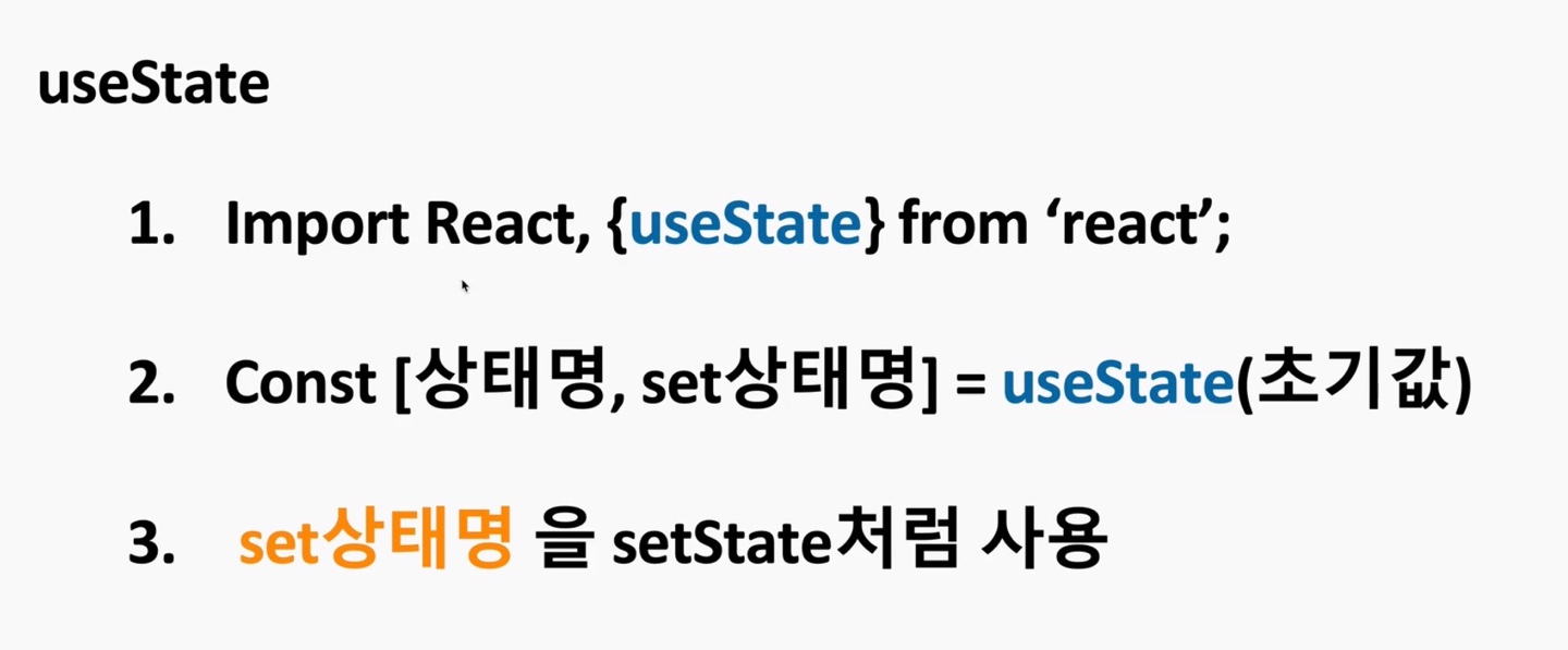 Hook이란 간단히 말하자면 함수형 컴포넌트에서도 state를 가질 수 있도록 하는 것이다.