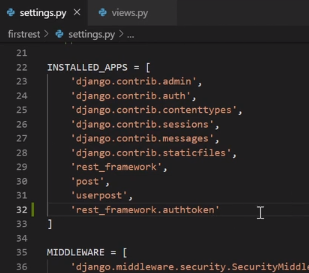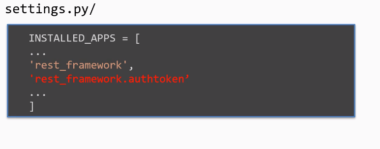 2.authtoken을 settings py에 작성하고 migrate까지 해줘야한다.