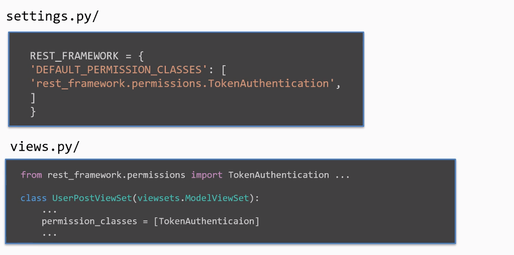 개별로 view에 authentication_classes를 TokenAuthentication이라 지정한다.