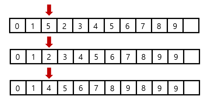 -중간 삽입 삭제는 값의 삽입하거나 삭제할 위치를 기준으로 뒤의 모든 값들이 복사가 이르어지므로 중간 삽입 삭제는 비효율적이다.👎