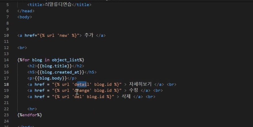 그럼 각각 연결된 템플릿에서 blog_list와 blogpost라는 변수로 오브젝트를 불러올수 있다.