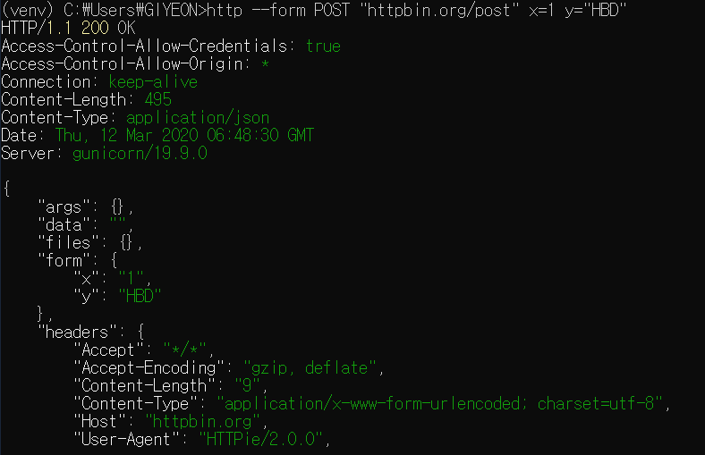 http --form POST 대상주소 GET인자==값 PUT인자=값